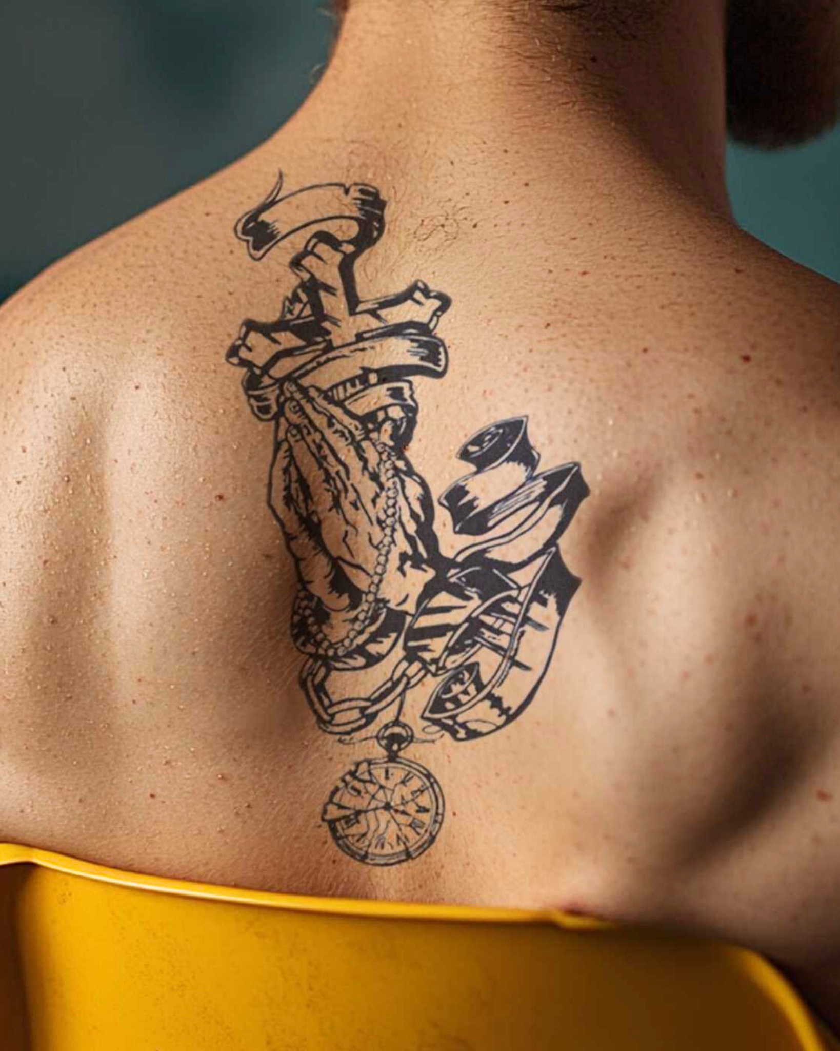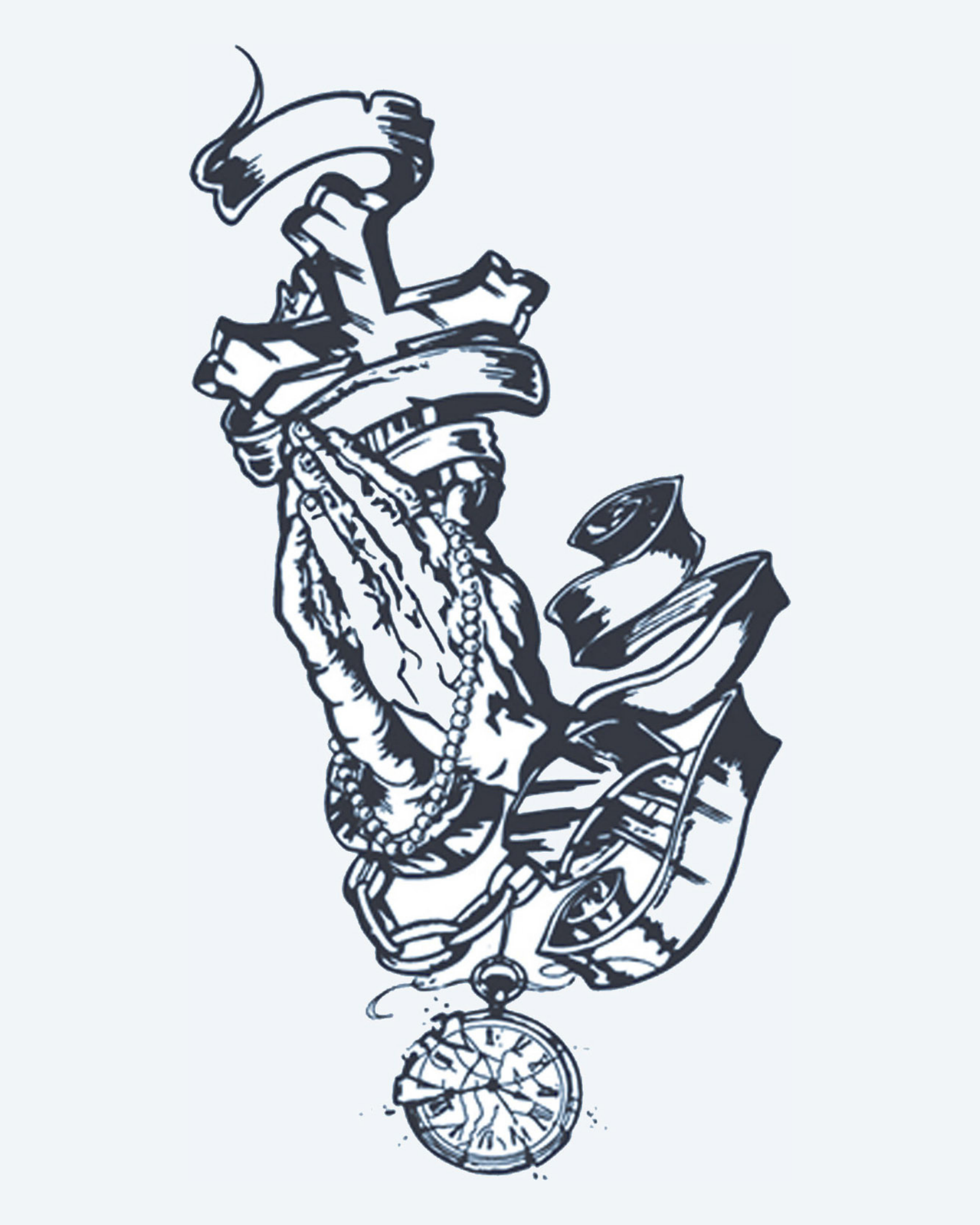 Clasped hands holding a crown, with chains and a diamond hanging below. This design symbolizes faith, royalty, and strength, with a nod to the value of both spiritual and material wealth. Perfect for someone who seeks balance and power in life.