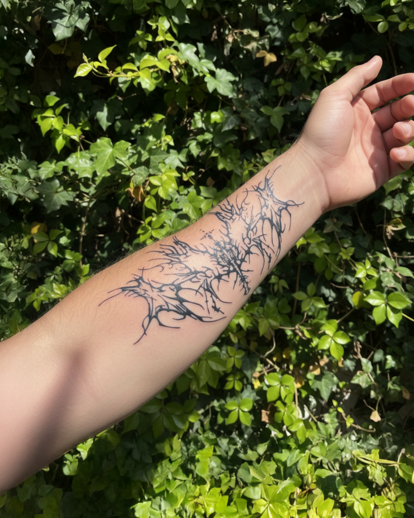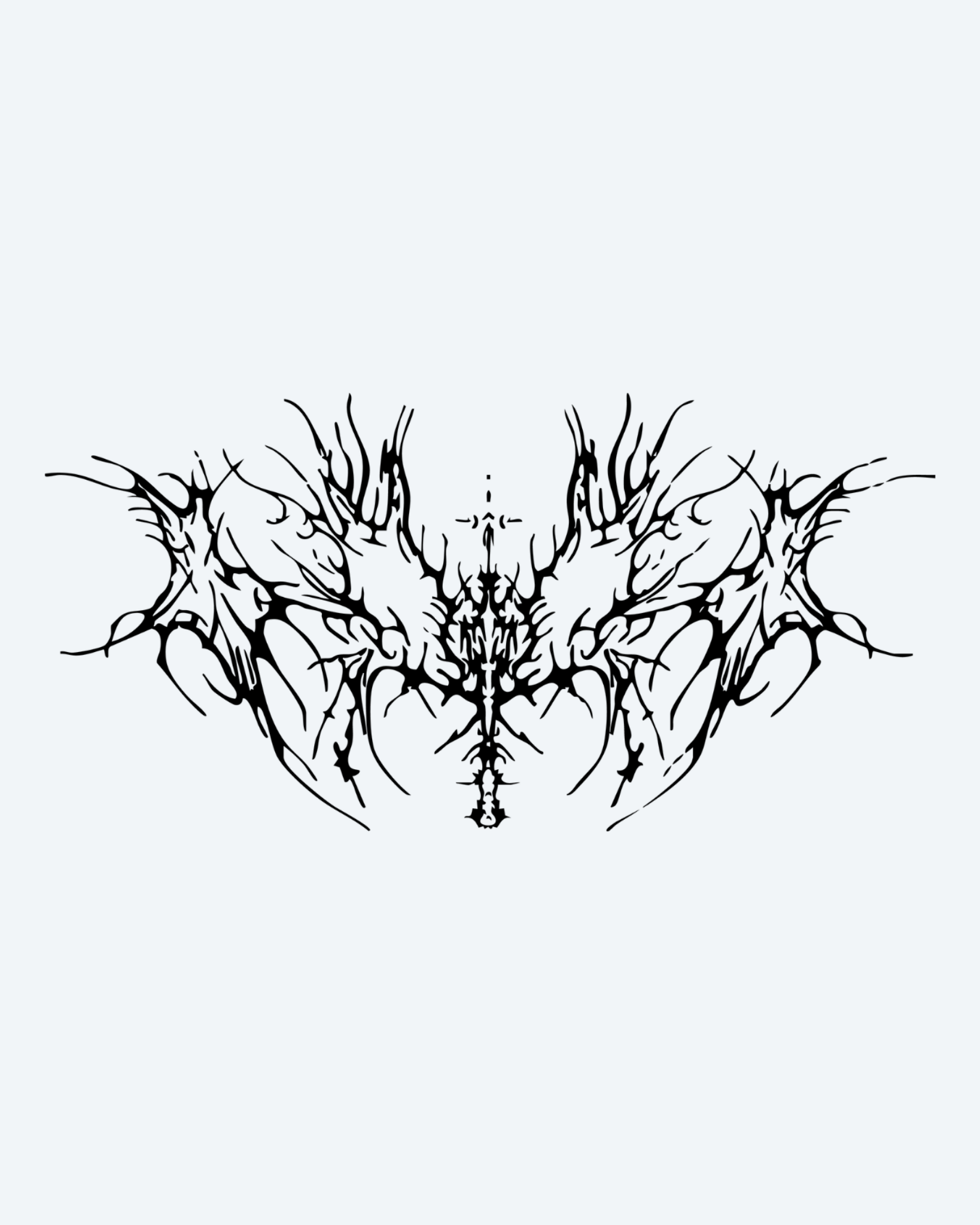 Sharp, jagged wings spread wide with dark, spiky lines forming a fiery shape. This tribal tattoo looks fierce and powerful, like a demon rising with untamed energy and strength.